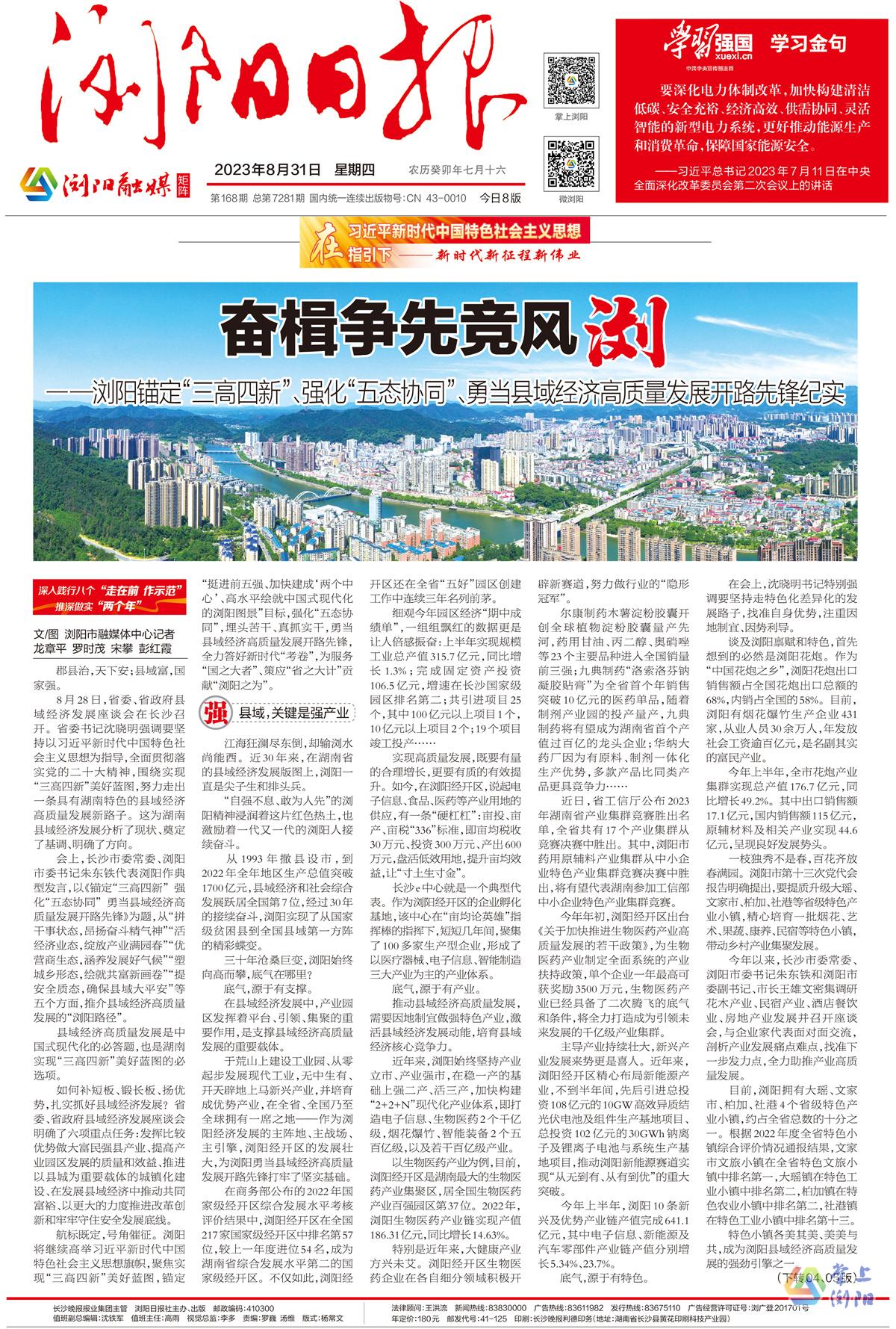 长沙晚报掌上长沙8月31日讯(通讯员 龙章平 罗时茂 宋攀 彭红霞)郡县治,天下安;县域富,国家强。